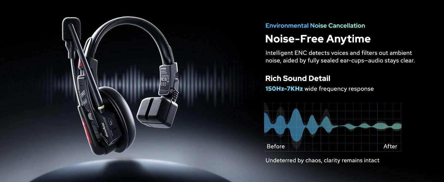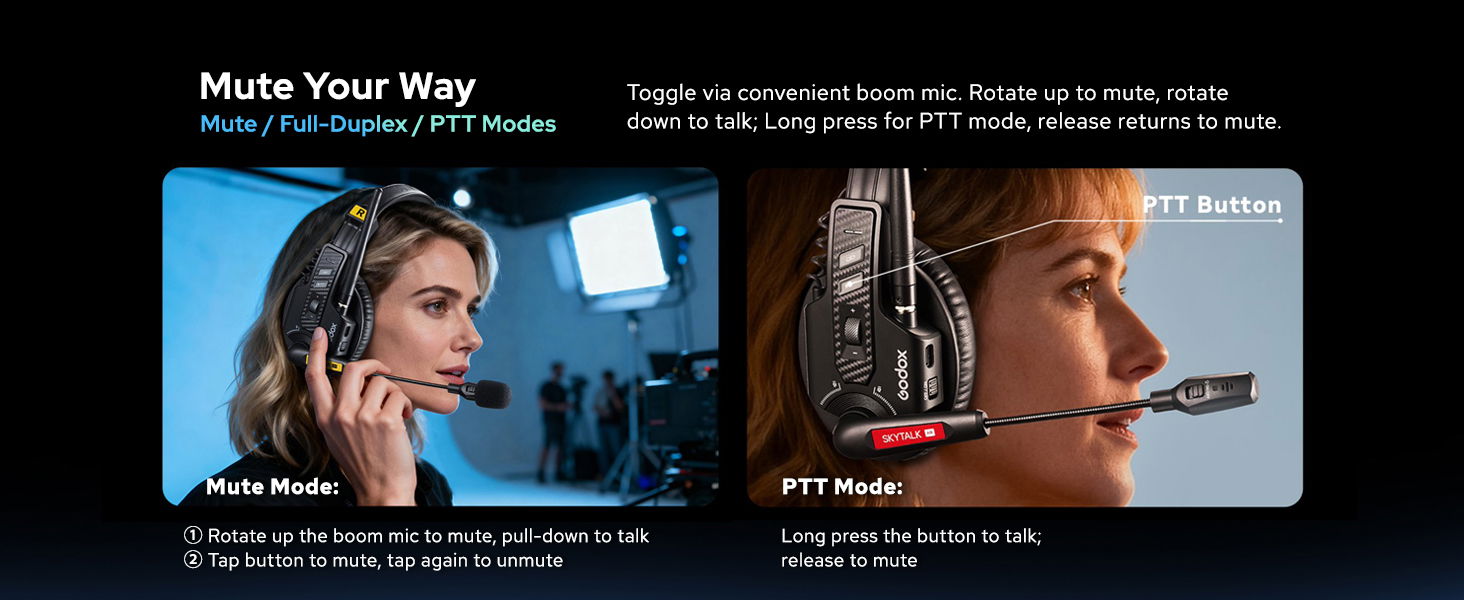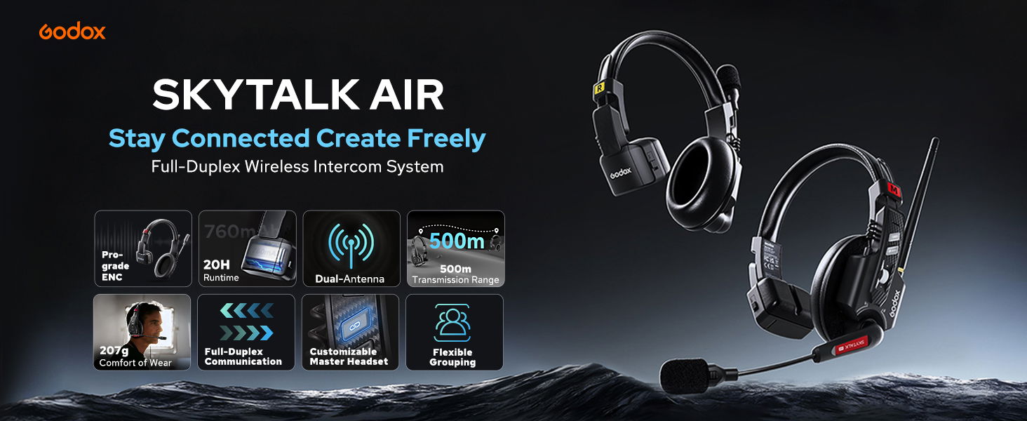 GODOX SkyTalk Air 4S Wireless Intercom Headset System,2.4GHz 500m/1640ft Wireless Communication Headset 20H Worktime with Noise Reduction, for 4-Person