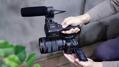 The EOS C50 is Canon’s lightest, most compact Cinema EOS camera, featuring a detachable XLR top handle, 3" articulating touchscreen, active cooling, 14 assignable buttons, zoom rockers, tally lamp, and multiple mounts – perfect for handheld, gimbals, and drones.
