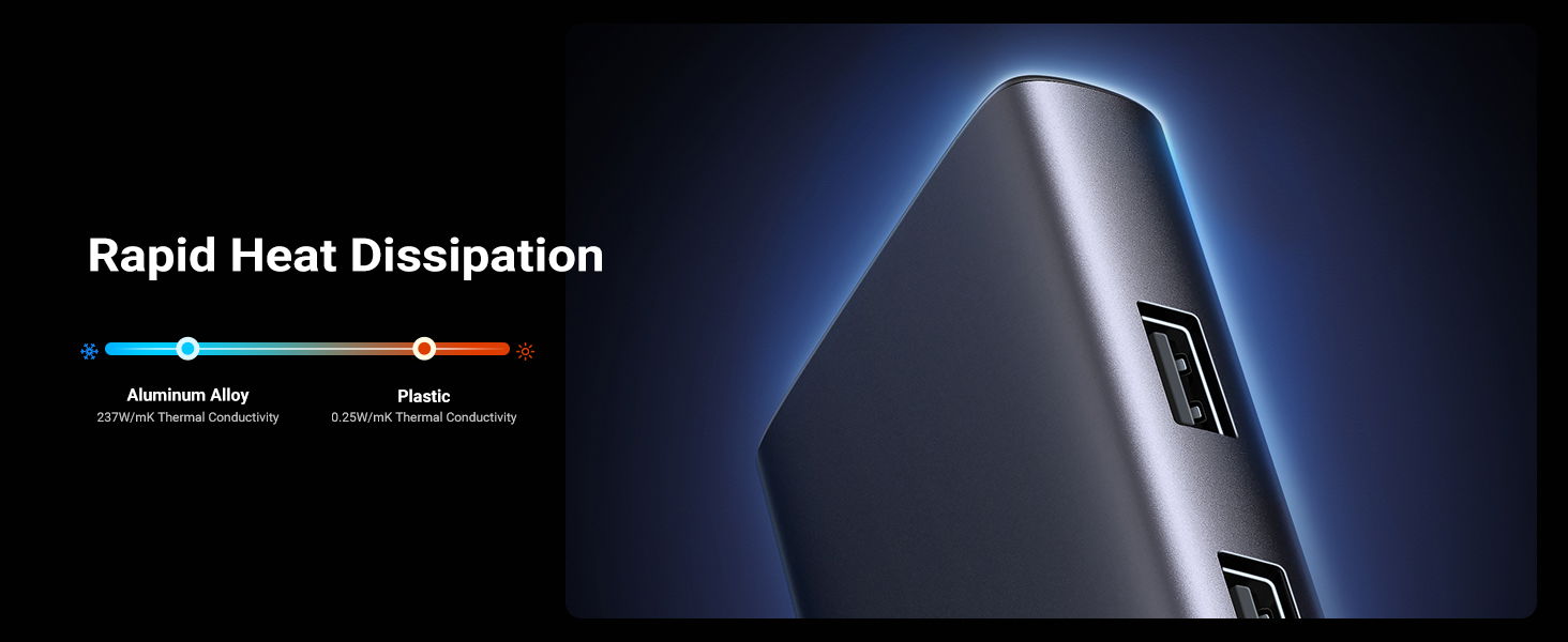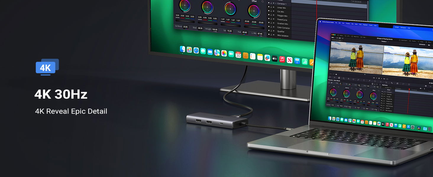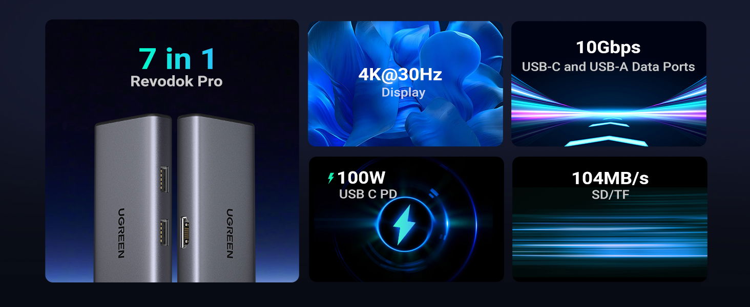 Ugreen Revodok Pro 107, 7 in 1 USB C Hub Gigabit Ethernet Adapter with 4K HDMI, 100W PD Charging, 15598, Grey