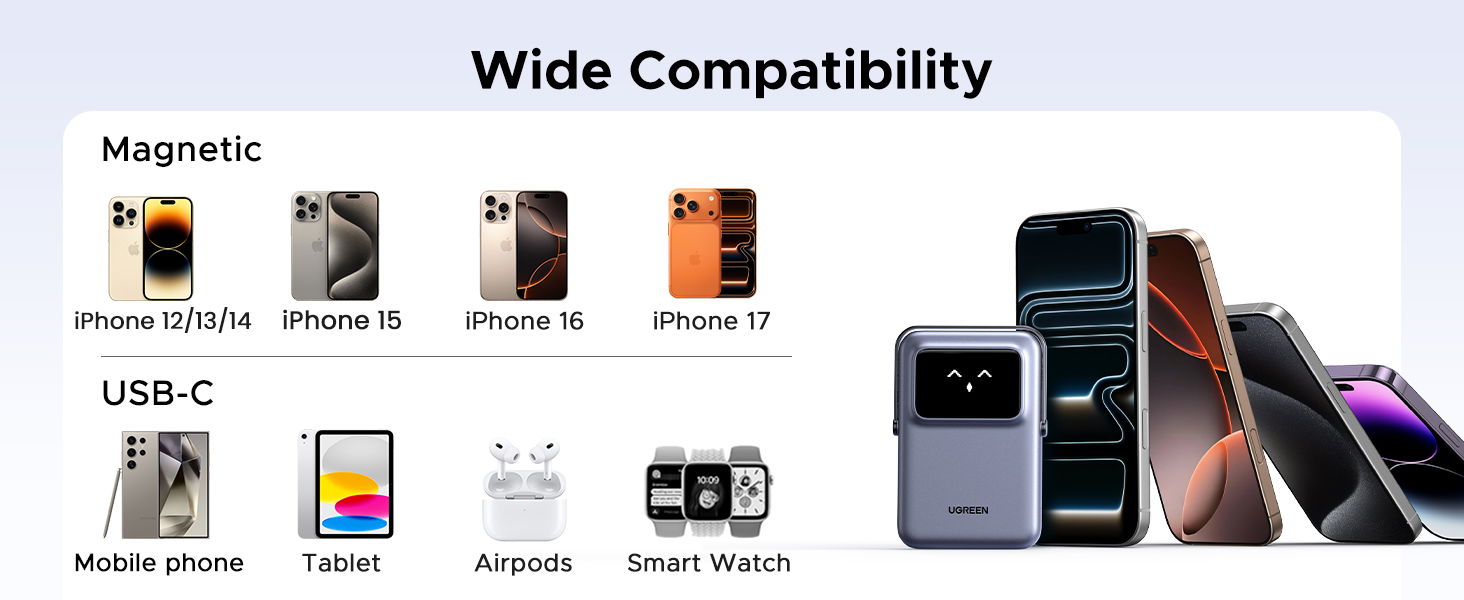 Ugreen Uno Magnetic Wireless Power Bank, 10000mAh, 15W, Qi2 Technology, Small Size, Big Power, 45329, Gray