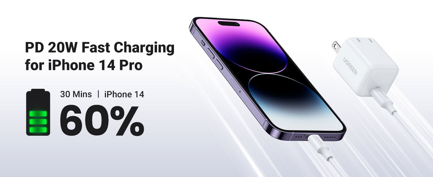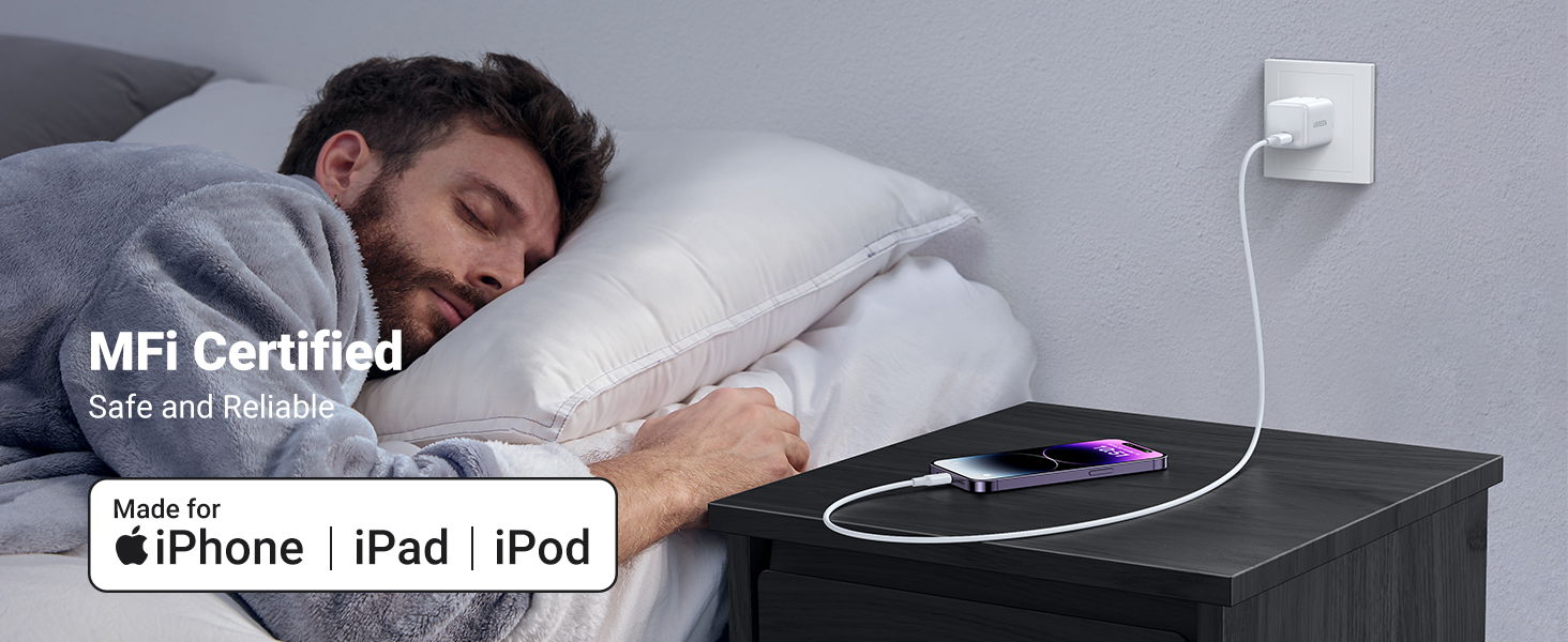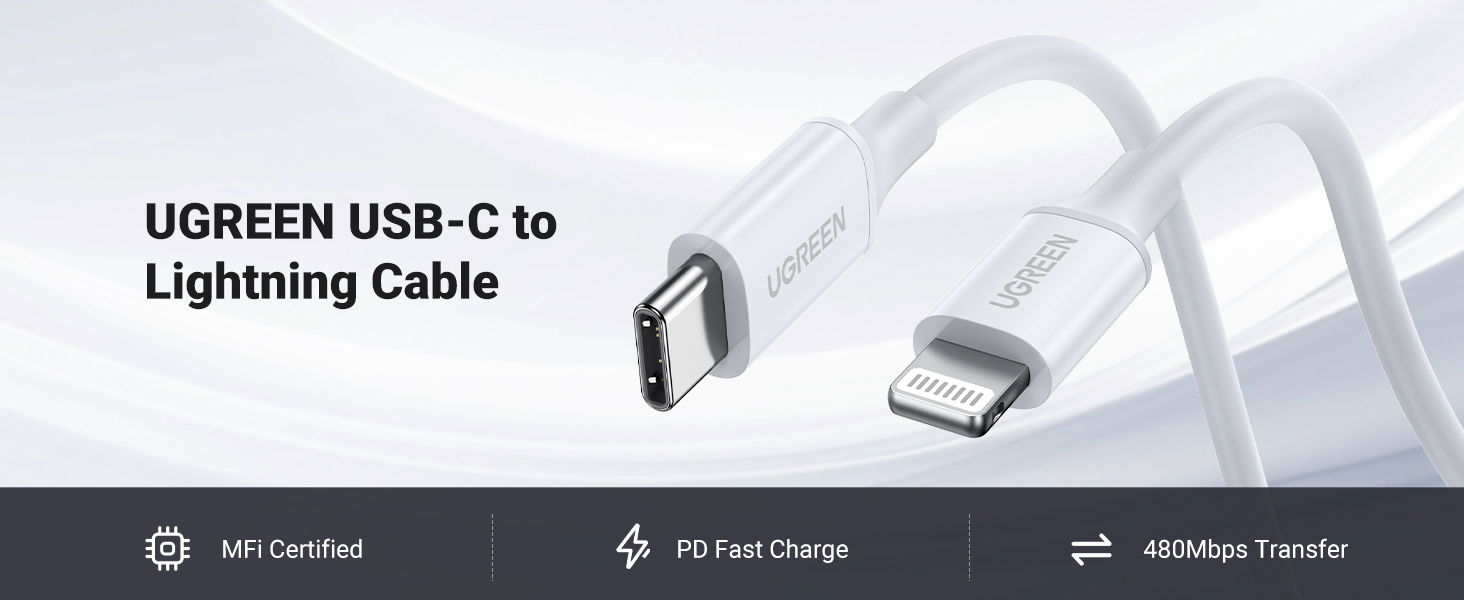 Ugreen USB C to Lightning Cable, 2m MFi Certified PD Fast Charging Lightning Rubber Shell Cord, 60749, White