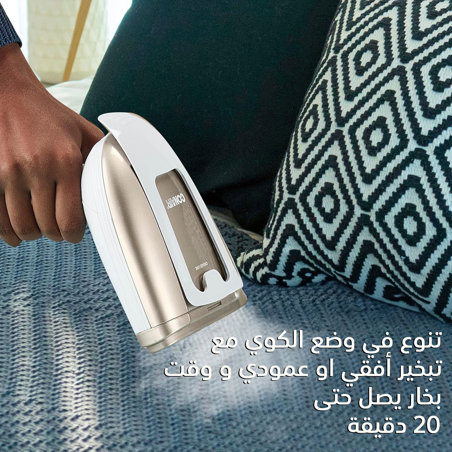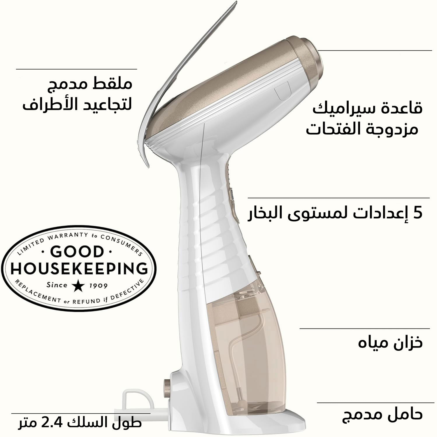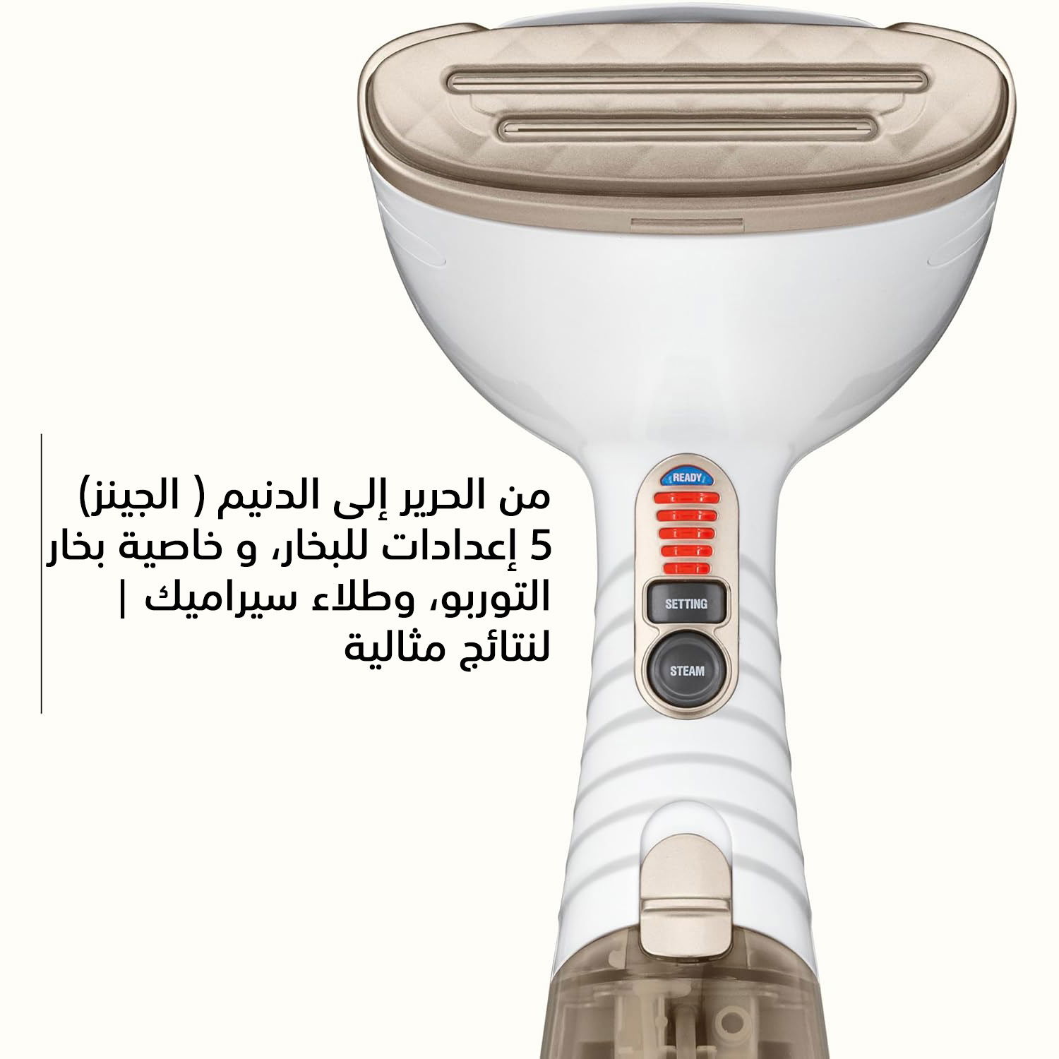 مكواة البخار المحمولة Conair Turbo ExtremeSteam، بقوة 1875 واط، وخزان ماء بسعة 230 مل، طراز GS59XSDE، أبيض وذهبي