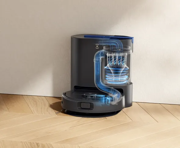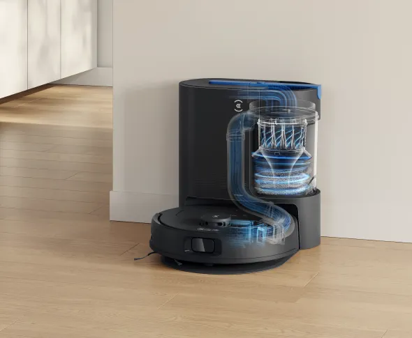 تتميز DEEBOT N20e Plus بمحطة تفريغ تلقائي مدمجة وقوية، تعتمد على تقنية ECOVACS PurCyclone، التي تفصل الهواء والغبار بفعالية تصل إلى 95%، مما يمنع الانسداد بشكل كبير ويضمن قوة شفط عالية. كما أن نظام الفصل الإعصاري ثنائي المستوى ونظام الترشيح رباعي المراحل يمنعان التلوث الثانوي بفعالية، ويعززان من صداقتهما للبيئة.