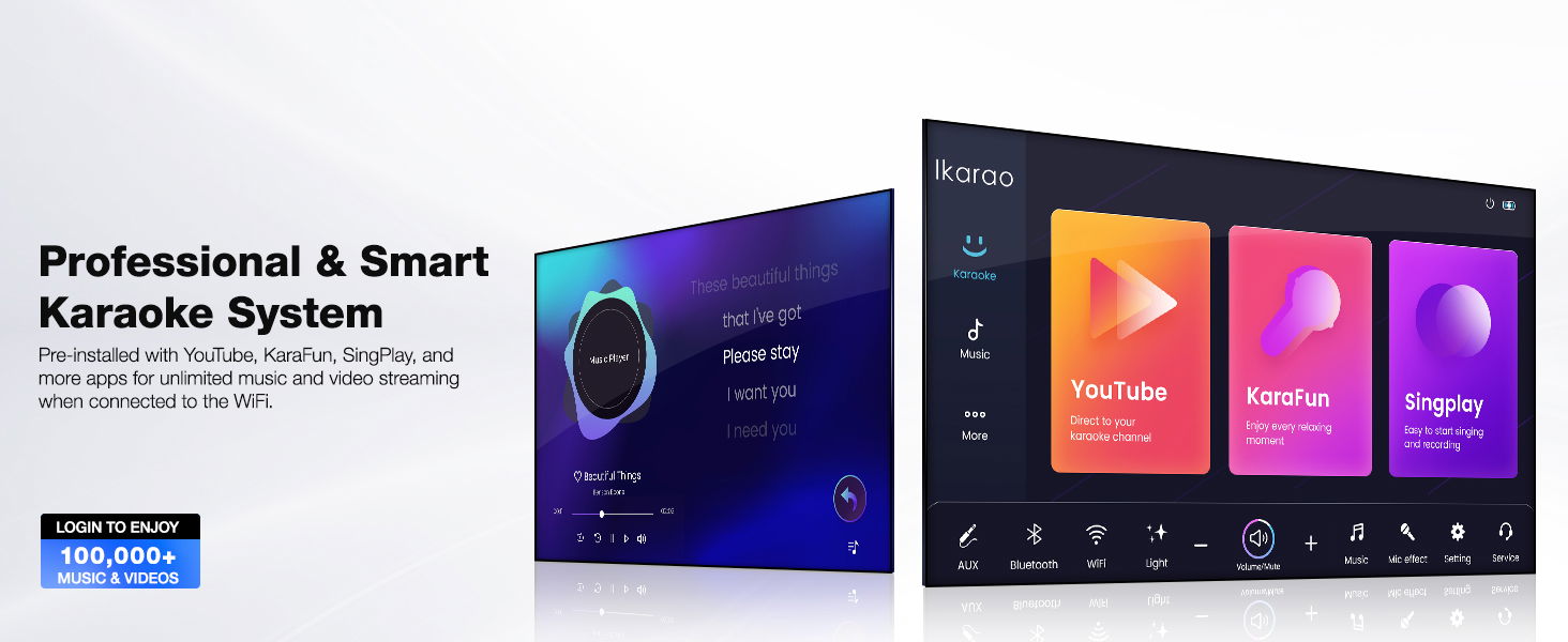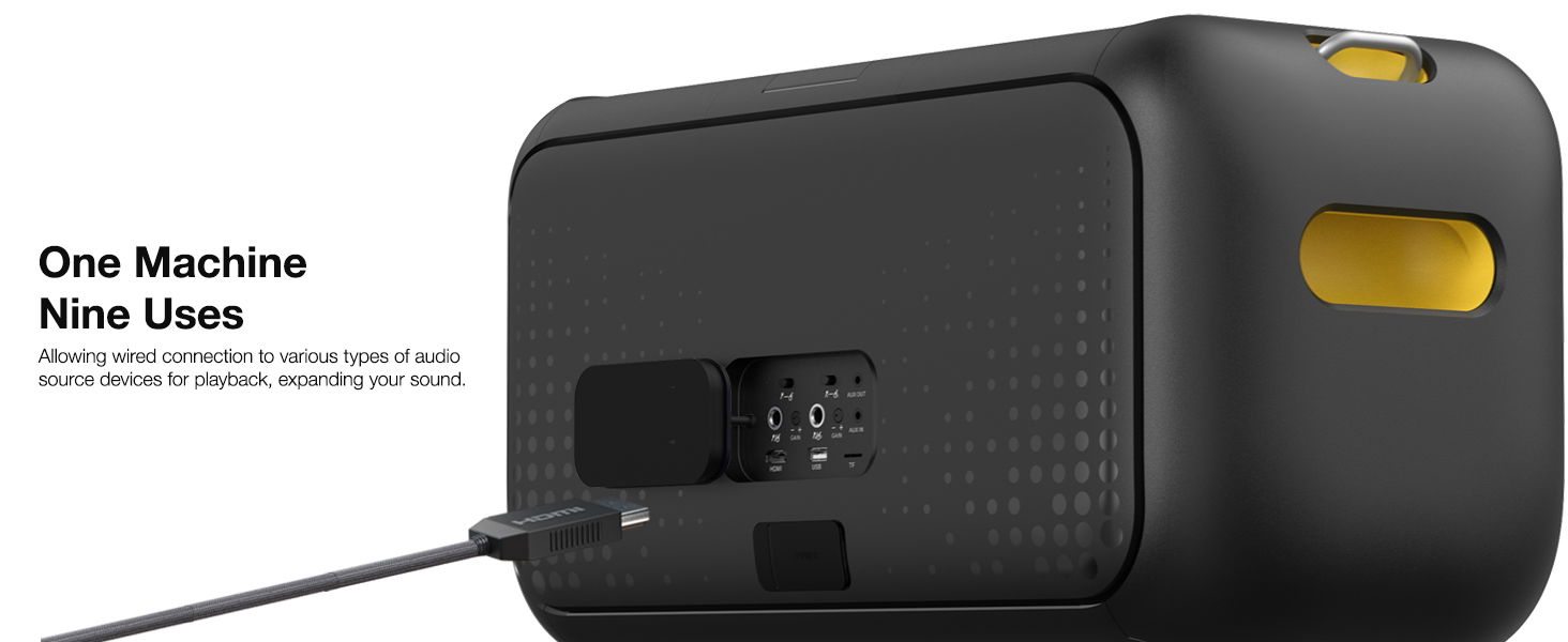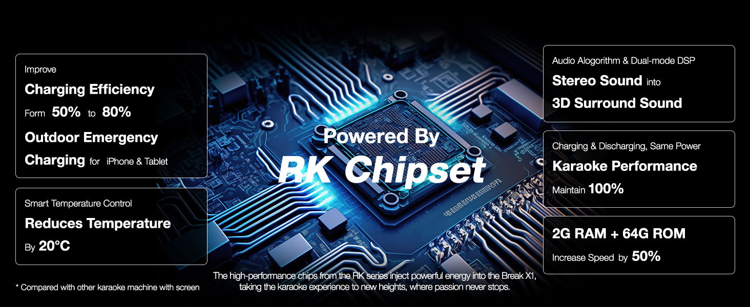 إيكارو جهاز كاريوكي مع شاشة عرض مدمجة مقاس 13.3 بوصة، جهاز كاريوكي متكامل مع ميكروفونين لاسلكيين مخفيين وشحن ذاتي، ومكبر صوت بلوتوث بقوة 460 واط للحفلات،Break X1، لون أسود