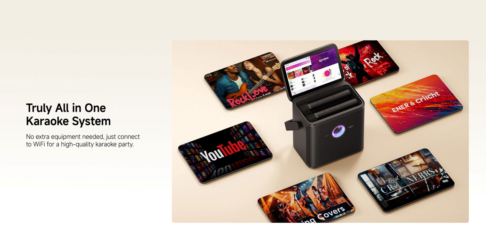 إيكارو مكبر صوت كاريوكي بشاشة 7.1 بوصة، نظام كاريوكي لليوتيوب، ميكروفونان لاسلكيان، ضبط تلقائي للصوت والصدى، مكبر صوت كاريوكي محمول للحفلات المنزلية والخارجية، Shell S3، أسود