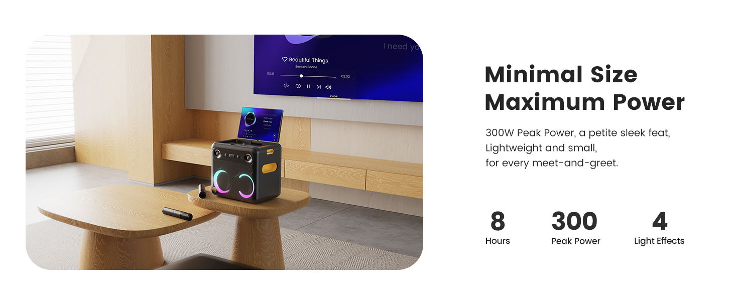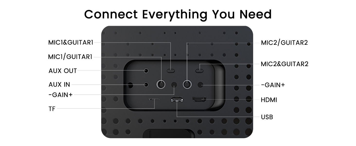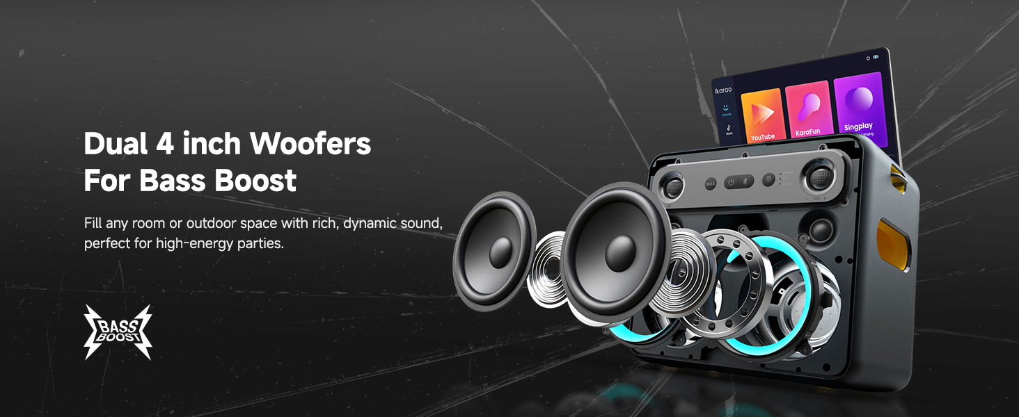إيكارو مكبر صوت كاريوكي ذكي بشاشة 10.1 بوصة، وجهاز لوحي للكاريوكي بسعة 32 جيجابايت، ميكروفونين لاسلكيين، نظام كاريوكي احترافي، قوة قصوى 300 واط، 4 أضواء دي جي، مكبر صوت كاريوكي مناسب لجميع المناسبات، Break X2، أسود