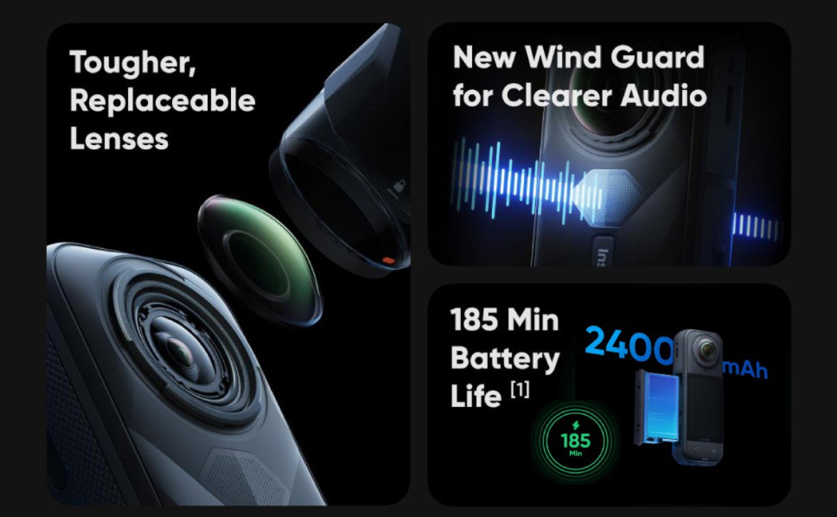 كاميرا إنستا360 X5، كاميرا 360 درجة، حزمة سفر، تحرير فيديو قوي بتقنية الذكاء الاصطناعي، عمر بطارية يصل إلى 208 دقائق، جودة صورة فائقة، أسود
