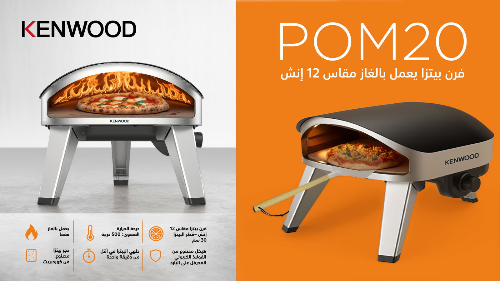 كينوود فرن بيتزا يعمل بالغاز، أقصى درجة حرارة ٥٠٠ درجة مئوية، يعمل بالغاز فقط، وقت طهي أقل من دقيقة، قطر البيتزا ٣٠ سم، OWPOM20.000GY