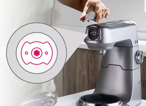 إذا كان خلاط Chef أو Chef XL مزودًا بمنفذ ملتوي كما هو موضح هنا، فهذا الملحق متوافق مع جهازك.