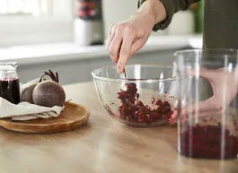 تم تصميم أنبوب التغذية لعصر جميع أنواع الخضار والفواكة حتى أكثرها أليافاً، حيث تكون النفايات في حدها الأدنى مع PureJuice XL. قم بوضع قطع الفواكة والخضار كاملة مباشرة في أنبوب التغذية لاستخراج كل العصير مع فصل الباقي إلى لب لاستخدامه في وصفات أخرى مثل البرغر النباتي أو البراونيز أو المهروس.