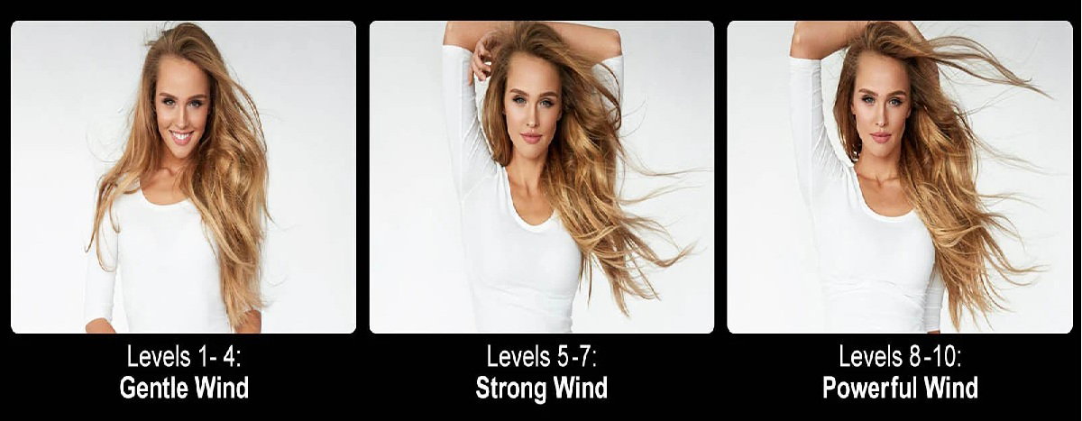 تتميز مروحة ”تايفون 1“ السوداء بعشر مستويات لسرعة الرياح يمكن ضبطها باستخدام قرص تحكم سهل الاستخدام. وسواء كنت ترغب في نسيم لطيف أو هبوب قوي، فإن مروحة تصفيف الشعر ”تايفون 1“ تلبي احتياجاتك.