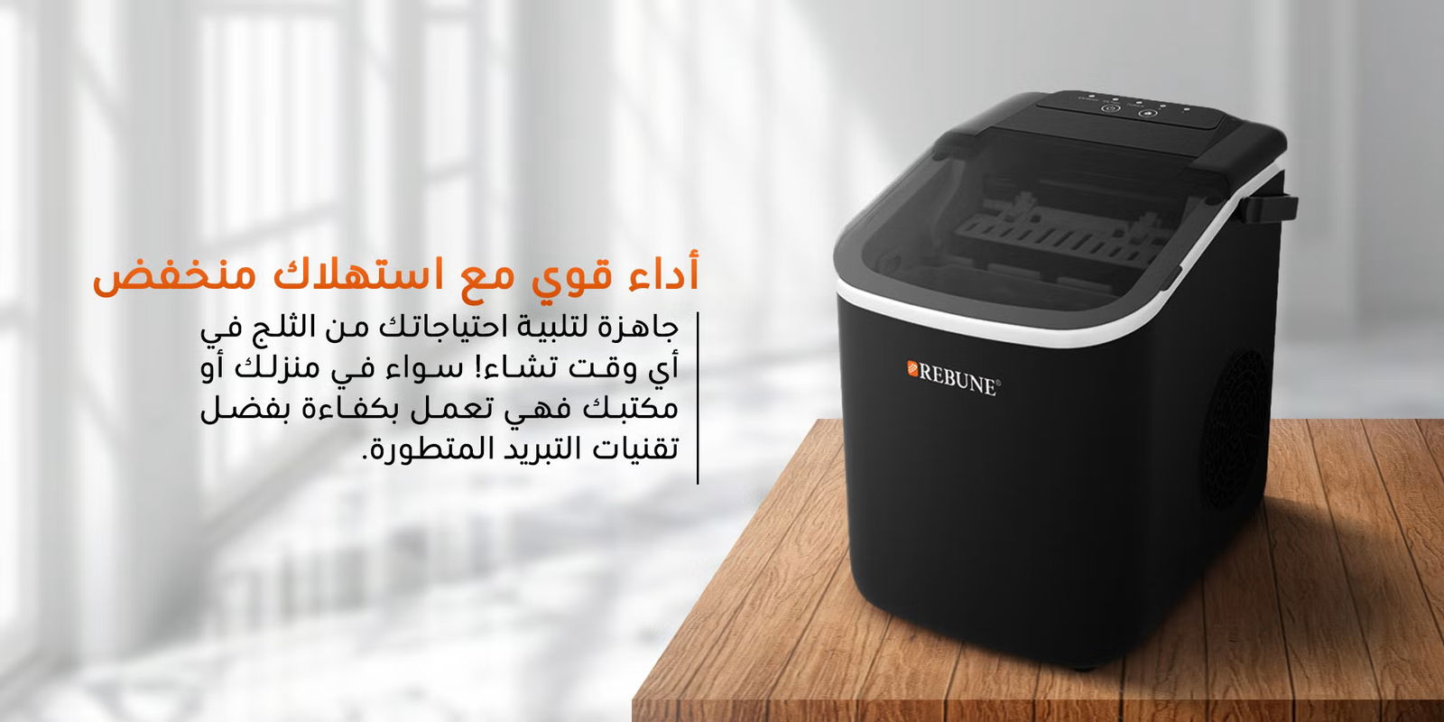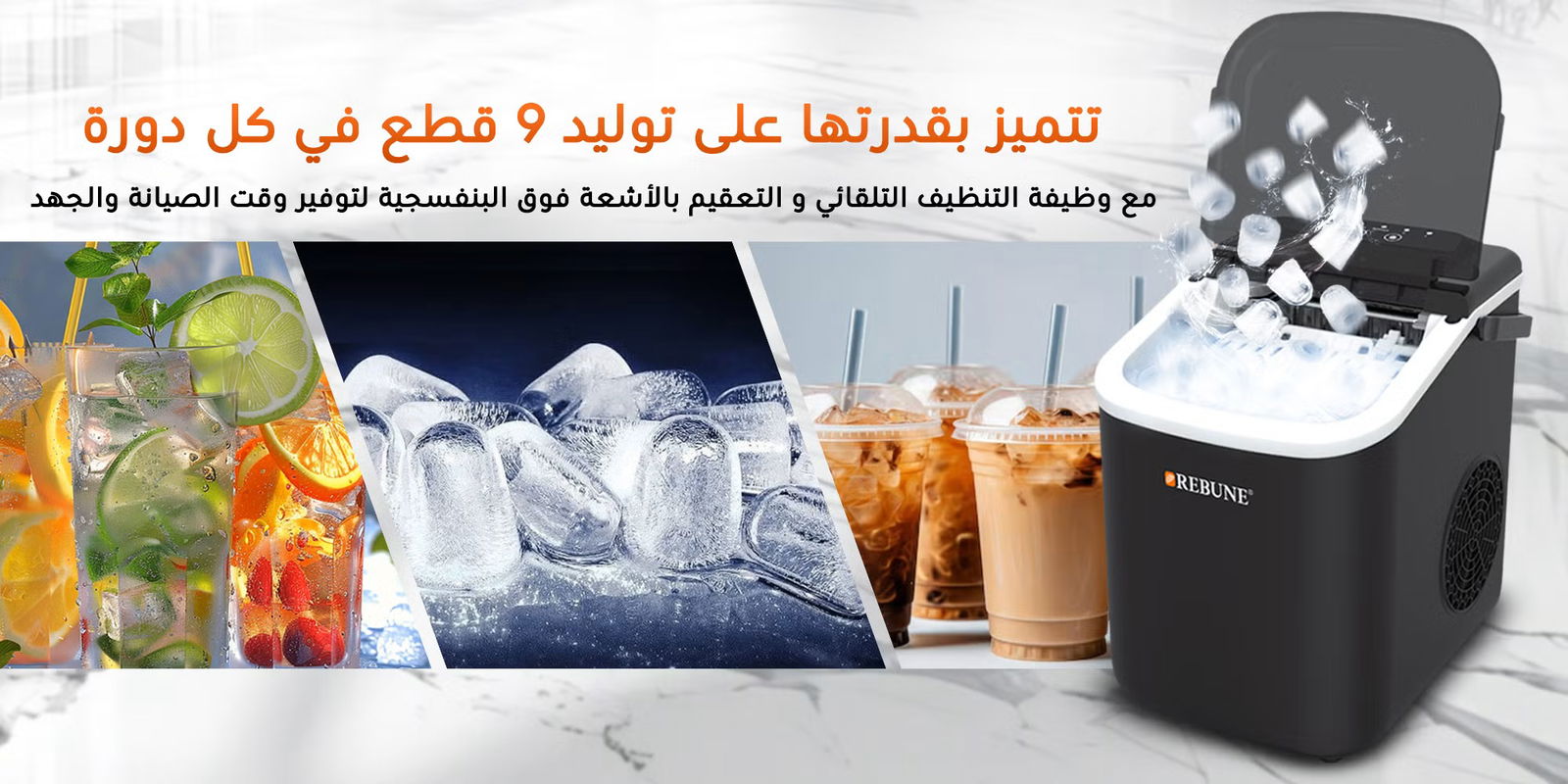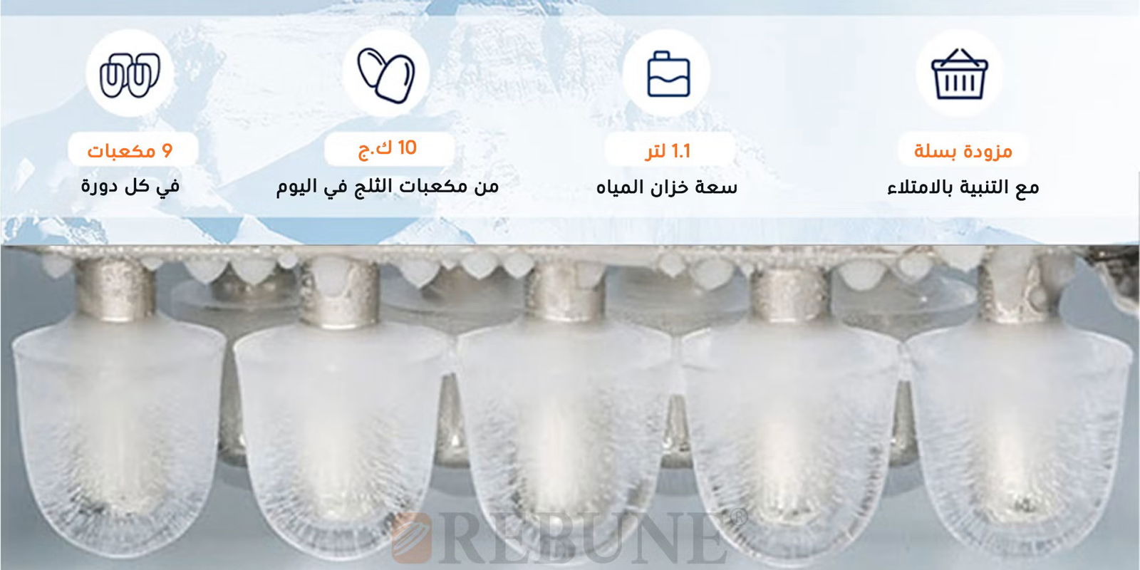 صانعة ثلج ريبون، 112 واط، سعة 1.6 لتر، تعمل بهدوء، تنظيف تلقائي وتعقيم بالأشعة فوق البنفسجية لضمان نقاء مثالي في كل مرة، RE6044، لون أبيض