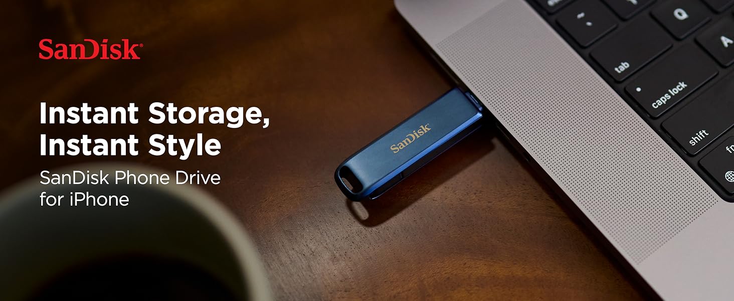 محرك أقراص سانديسك 256 جيجابايت للهواتف المحمولة ، يعمل مع iPhone 15 والموصل USB-C الأحدث، وiPhone 14 والموصل Lightning الأقدم، SDIXD0N-256G-GN6NE، لون معدني سماوي