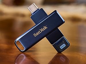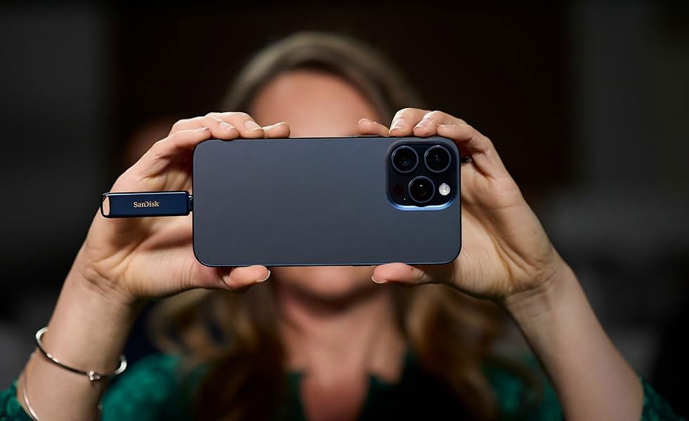 استمتع بمزيد من التوافق. يأتي محرك الأقراص SanDisk Phone Drive مزودًا بموصلين بدلاً من واحد، بحيث يمكنك نقل الملفات بسهولة بين أجهزة iPhone وiPad Pro وMac وأجهزة USB Type-C.