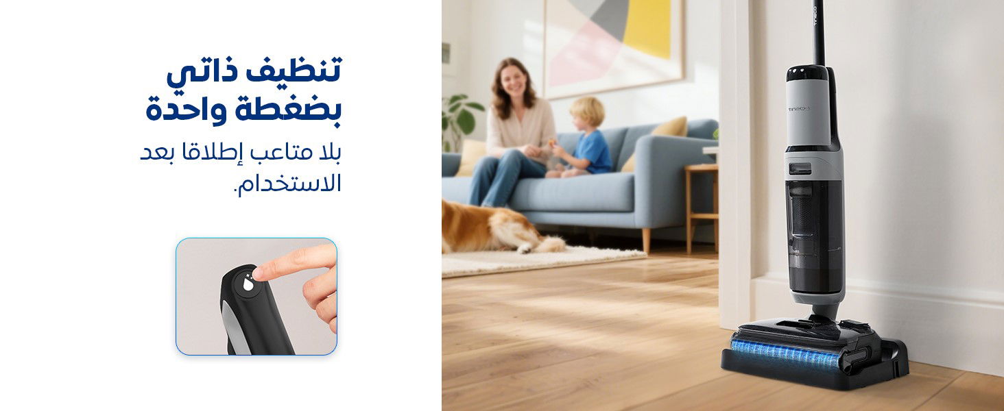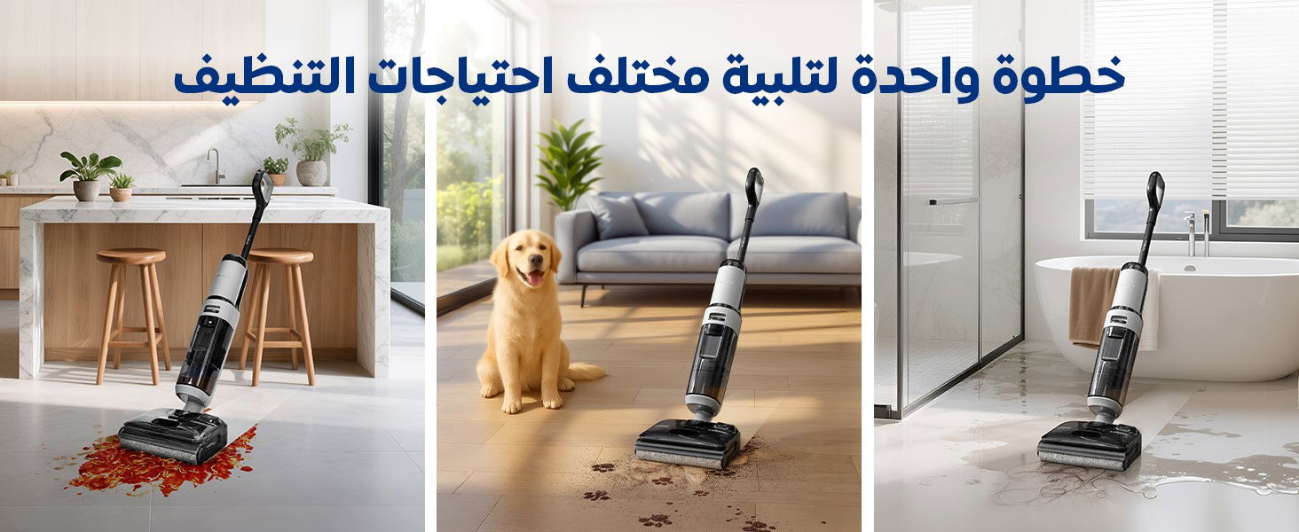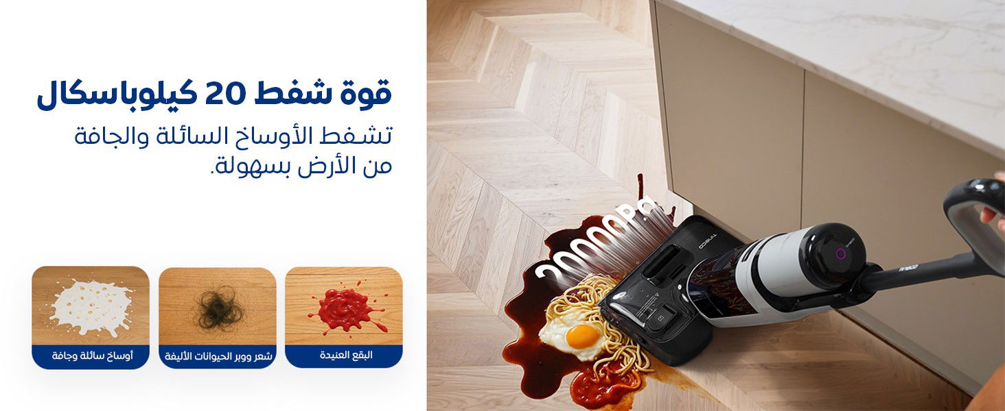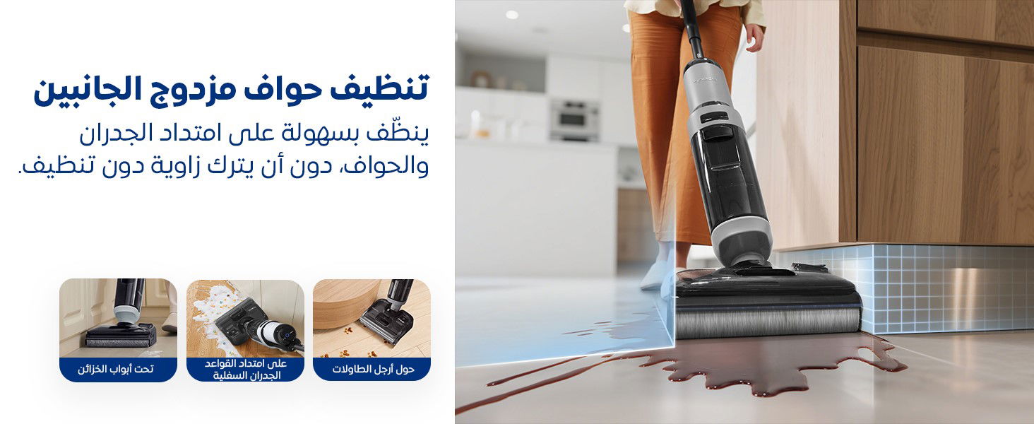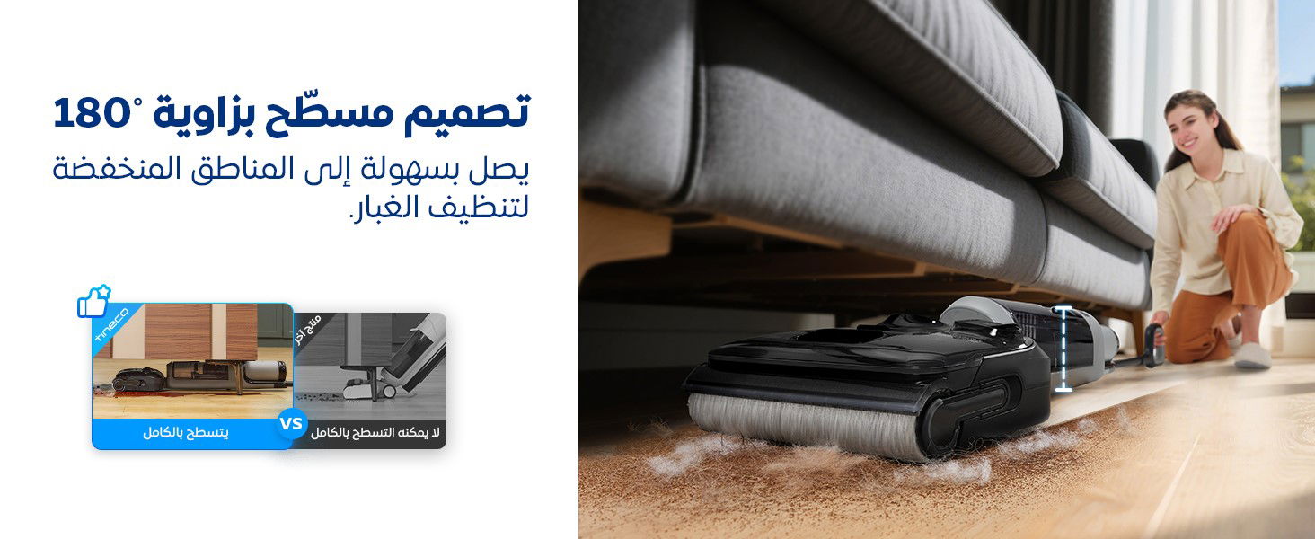 مكنسة تاينكو فلور ون آي 5 ستريتش للتنظيف الرطب والجاف، تقوم بالتنظيف والمسح في خطوة واحدة، قوة شفط 20 كيلو باسكال، تصميم مسطح بزاوية 180 درجة، تصميم مضاد للتشابك، تنظيف الحواف من الجانبين، مدة تشغيل تصل إلى 30 دقيقة*، (FW441700AE)، رمادي داكن