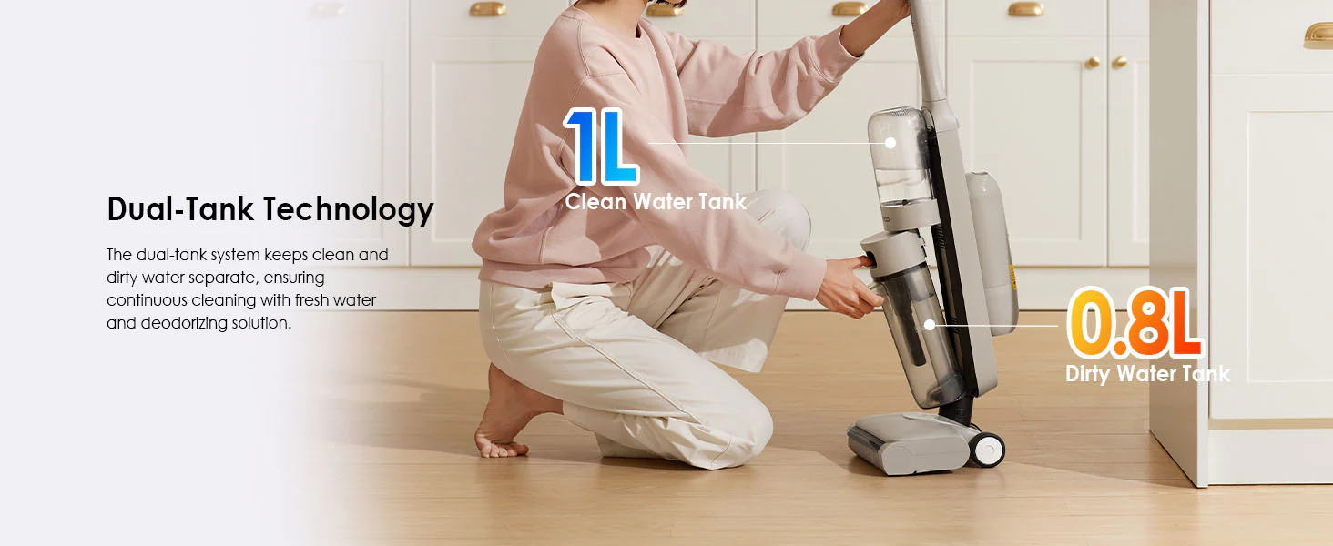 مكنسة تينيكو آي فلور واي 2 اللاسلكية للتنظيف الجاف والرطب، قوة شفط 20 كيلو باسكال، مقاومة للتشابك، خزان مياه سعة 1 لتر، مدة تشغيل 30 دقيقة، FW1H2100AE
